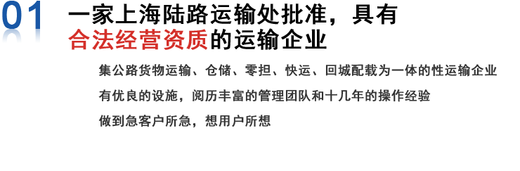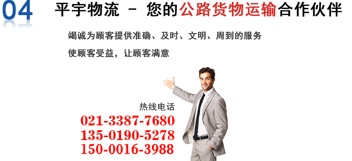 上海平宇物流有限公司是上海陸路運(yùn)輸處批準(zhǔn)具有合法經(jīng)營(yíng)資質(zhì)的運(yùn)輸企業(yè),集公路貨物運(yùn)輸、倉(cāng)儲(chǔ)、零擔(dān)、快運(yùn)、回城配載為一體的專(zhuān)業(yè)性運(yùn)輸企 業(yè)。 本公司擁有優(yōu)良的設(shè)施,閱歷豐富的管理團(tuán)隊(duì),雄厚的經(jīng)濟(jì)實(shí)力和十幾年的操作經(jīng)驗(yàn),真正做到急客戶(hù)所急,想用戶(hù)所想。本著互惠互利、優(yōu)質(zhì)高效、信譽(yù)第 一、客戶(hù)至上的宗旨贏(yíng)得了廣大客戶(hù)的信賴(lài)和一致的好評(píng)。